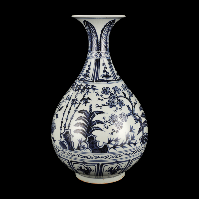 青花岁寒三友玉壶春瓶