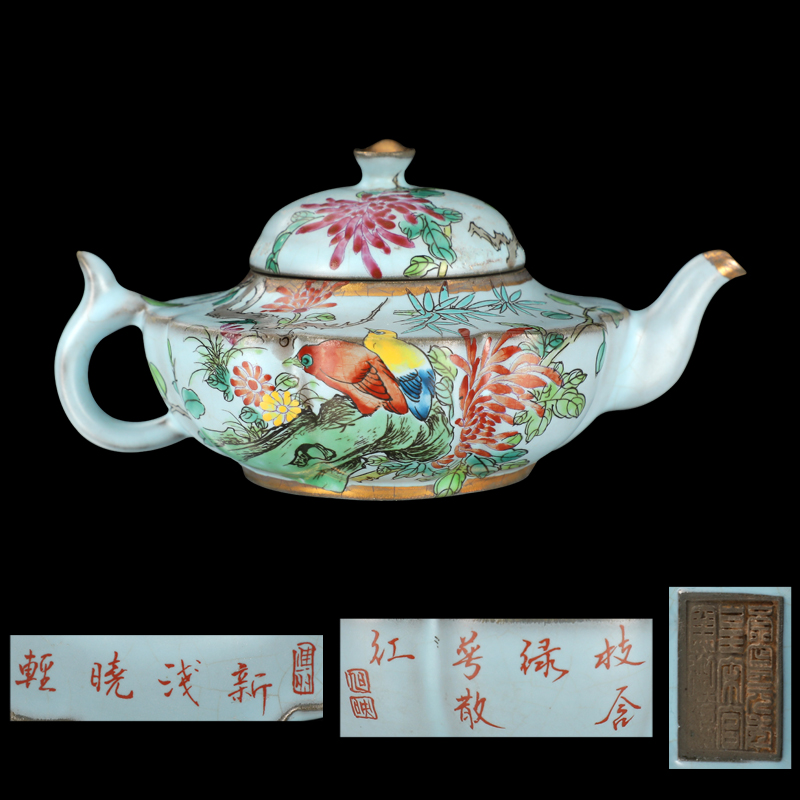 汝窑彩卉花鸟纹莲子壶