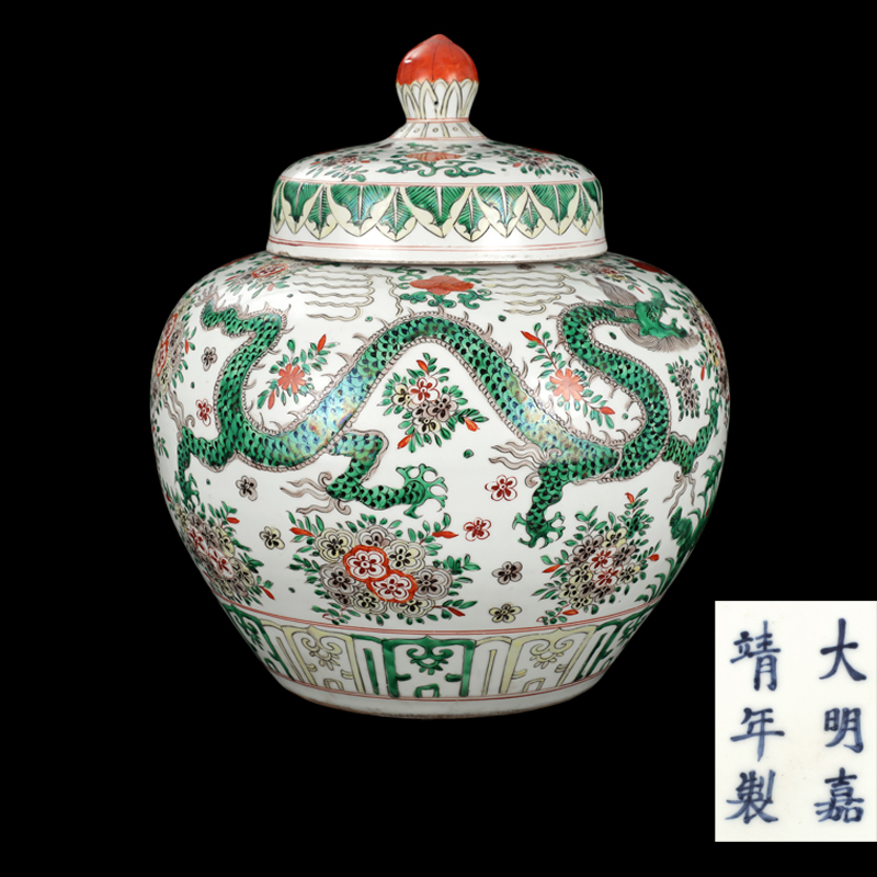 红绿彩龙纹盖罐