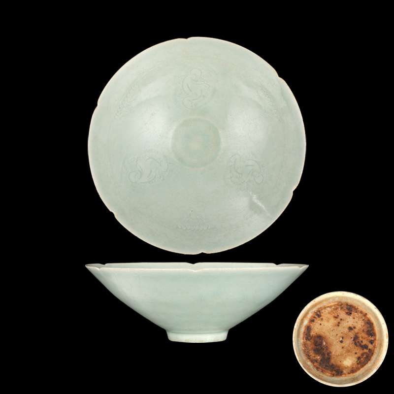 宋代湖田窑影青六葵口孩儿斗笠碗