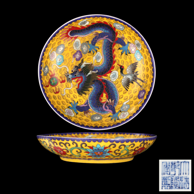 大清乾隆年制款掐丝珐琅龙纹盘