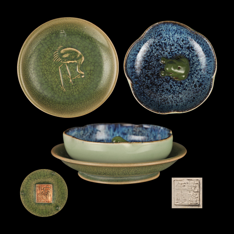 青瓷窑变釉托盘一组