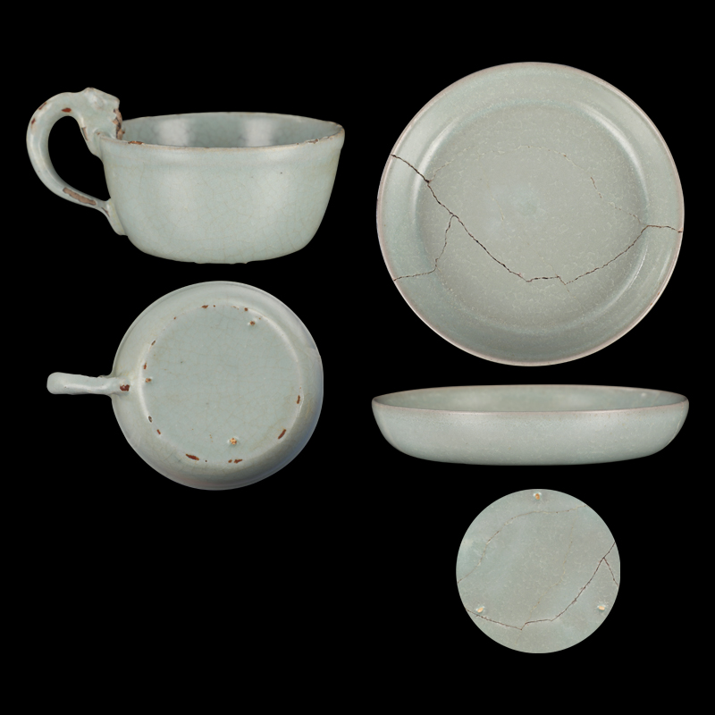 汝窑龙首把杯、汝窑小洗