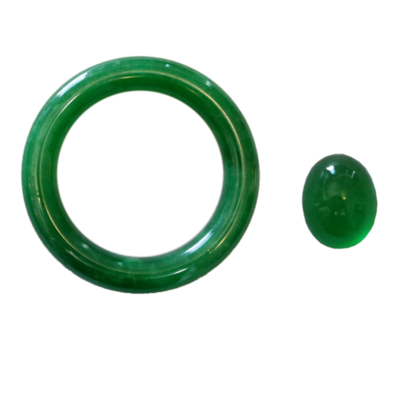 帝王绿糯米种支翡翠手镯 帝王绿玻璃种蛋面