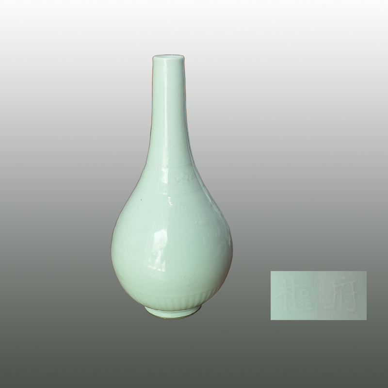 白釉雕花卉槌棒瓶