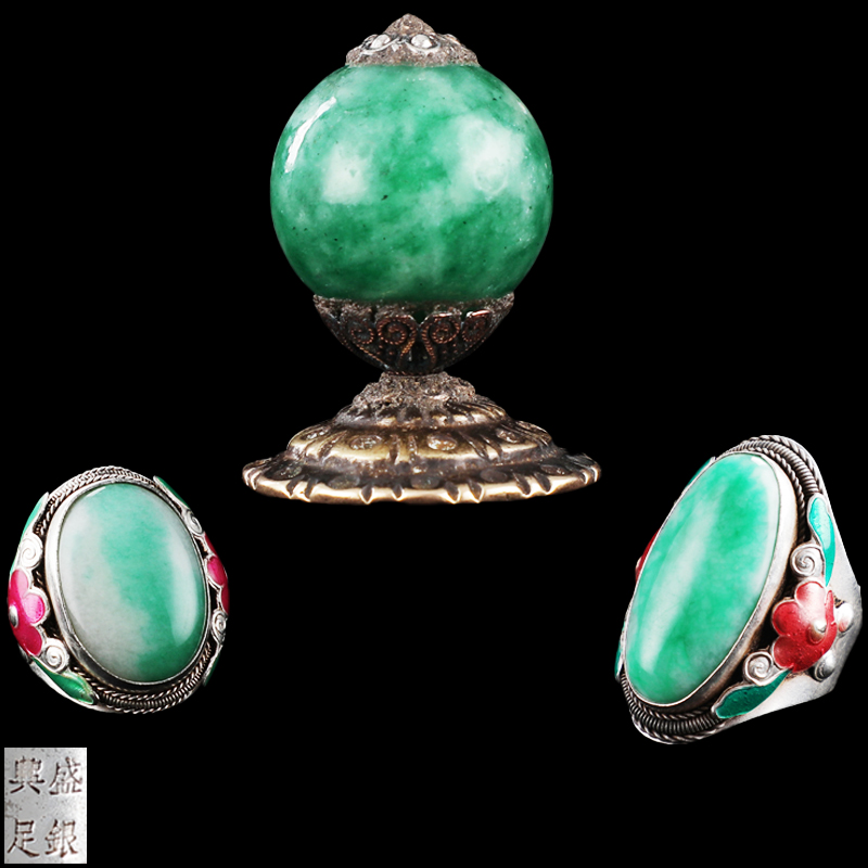 翡翠戒指、翡翠官帽顶 一组
