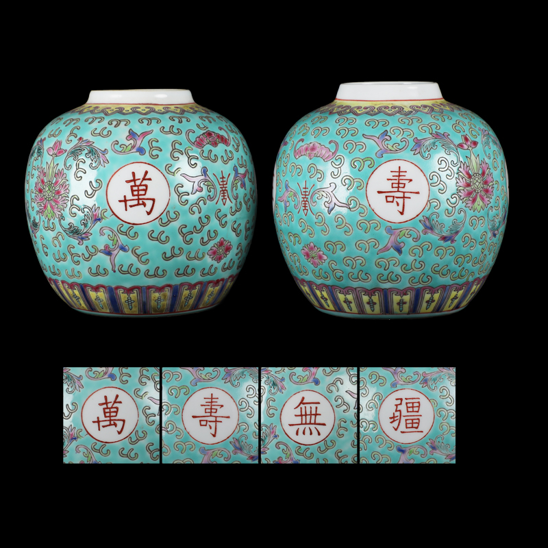 粉彩开光万寿无疆福寿罐