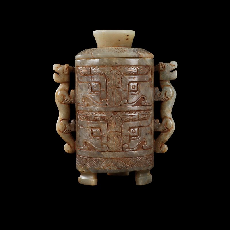 饕餮纹双螭耳三足罐