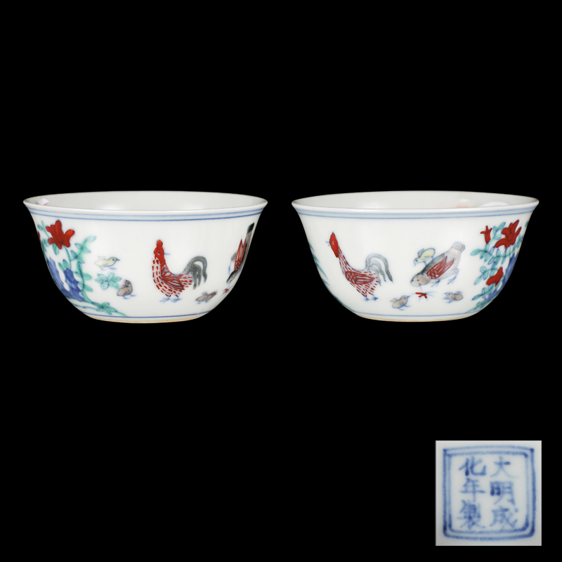 斗彩鸡缸杯一对