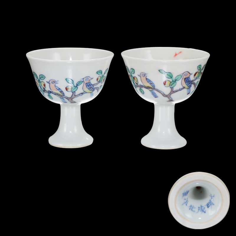 斗彩折枝花鸟高足杯一对