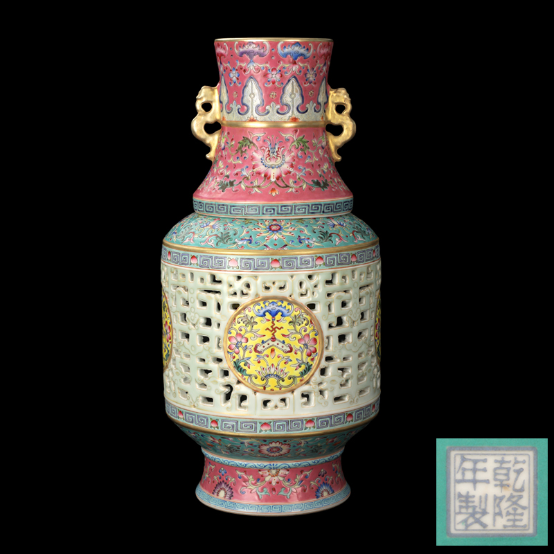 珐琅彩镂空转心瓶