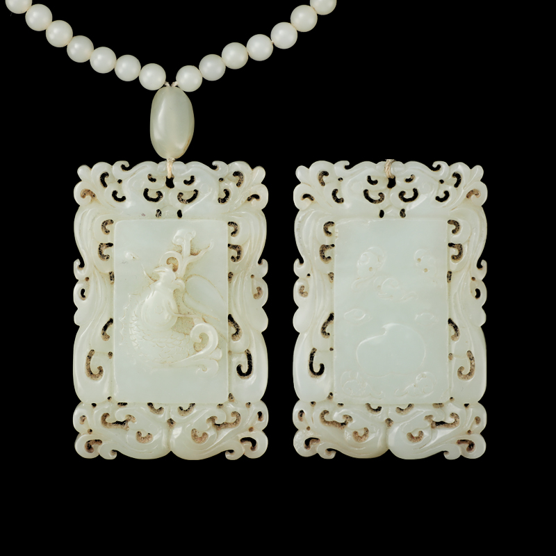 清和田玉镂空雕“五福捧寿年年有余”