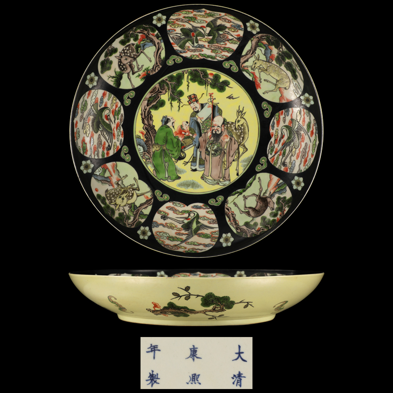 大清康熙年制素三彩福禄寿大盘