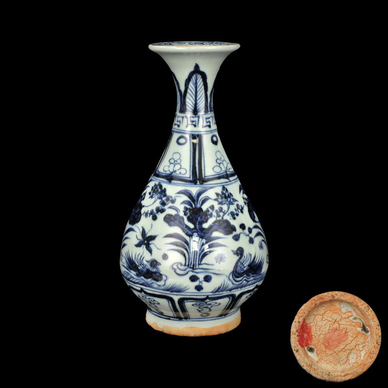 元代青花鸳鸯莲池纹玉壶春瓶