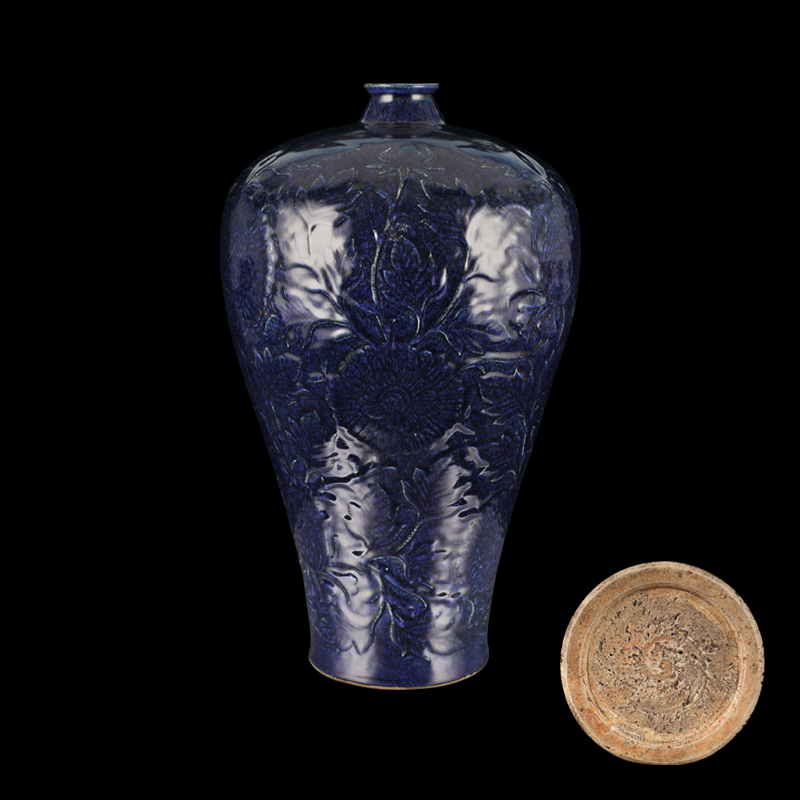 元霁蓝釉剔花缠枝莲纹梅瓶