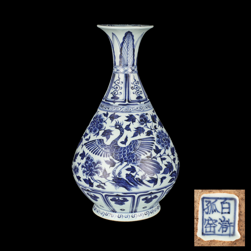 元青花双凤纹玉壶春瓶(白浒孤窑)