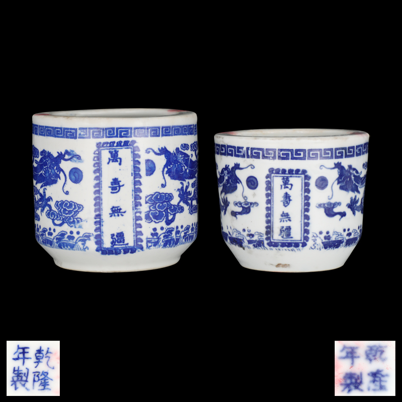 乾隆年制款青花龙纹万寿无疆罐 一对