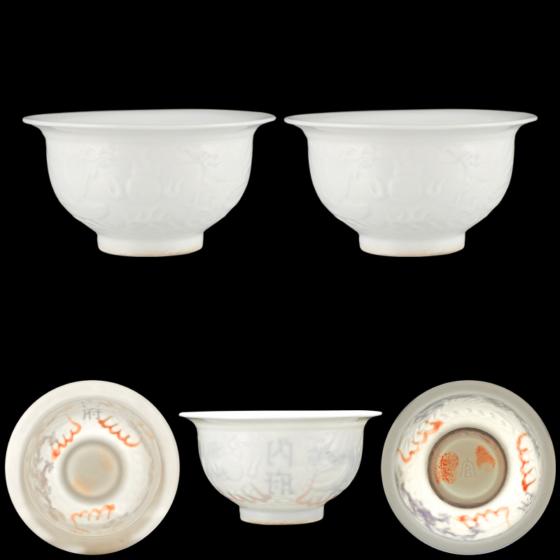 官字款内府瓷暗青花龙凤纹压龙凤纹碗一对