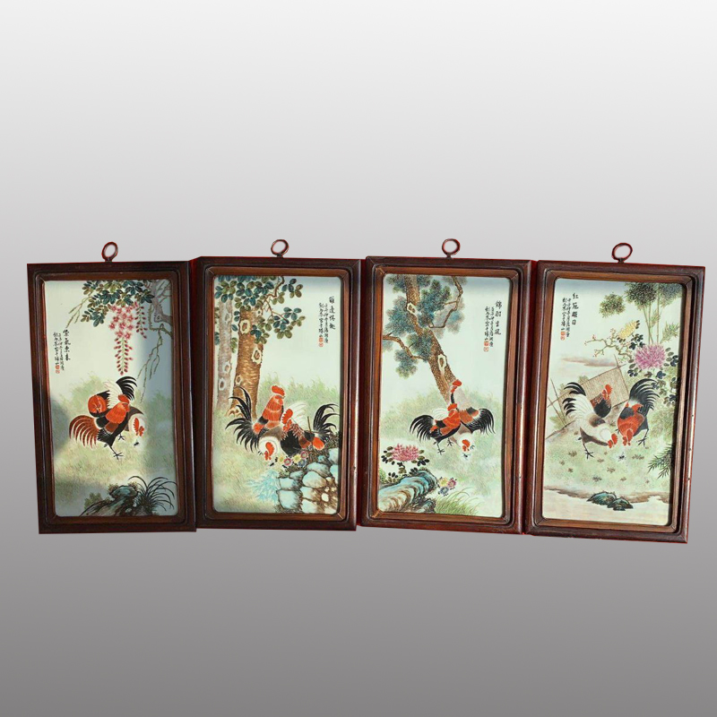 刘雨岑瓷板画四条屏