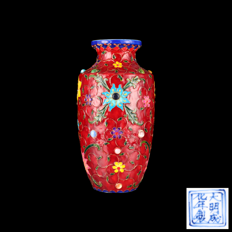 大明成化年制款瓷胎掐丝珐琅彩灯笼瓶