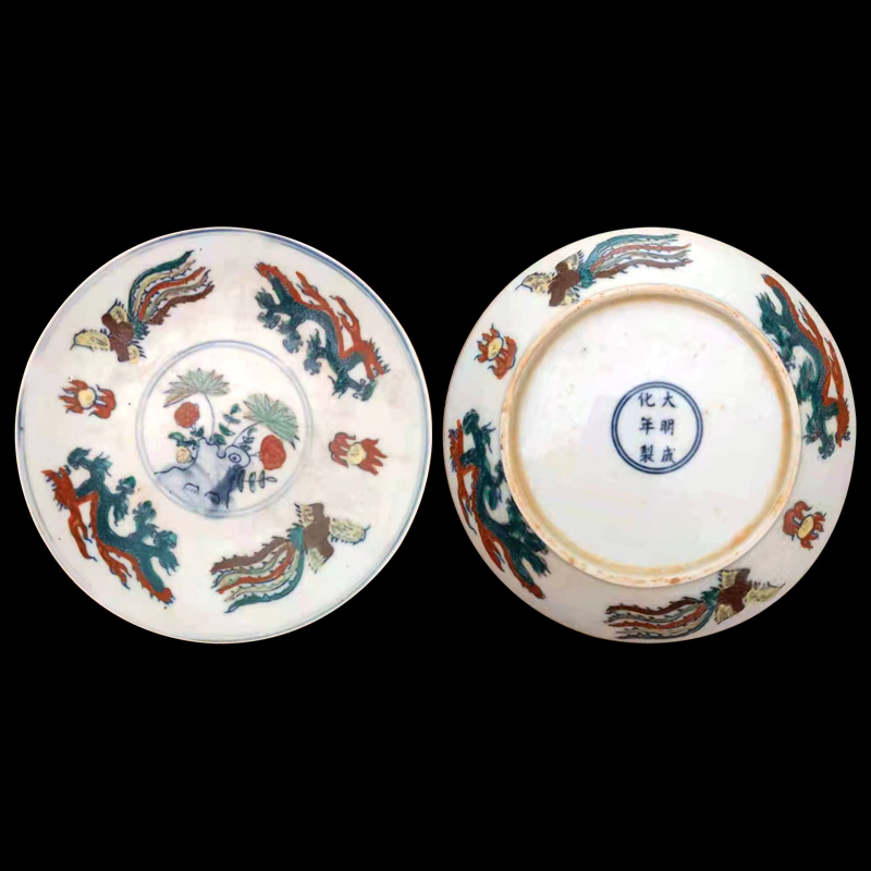 大明成化年制款斗彩龙凤纹盘