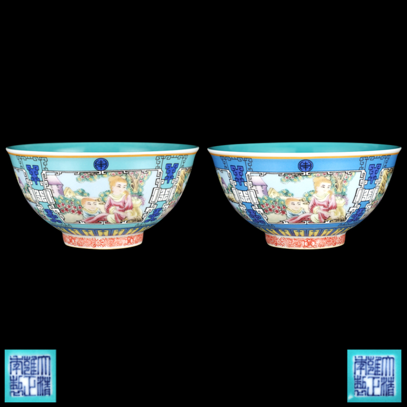 此藏品敞口,弧壁,圈足。造型优雅,胎质淘炼精细,釉面光润细腻,敷彩精确,浓艳而清晰,设色妍丽明快,布局典雅有致,品相完好,甚为难得。外壁通施宝石蓝釉,厚润匀净,色若绛霞,美如宝石。所书年款,端庄规整。犹称佳器。