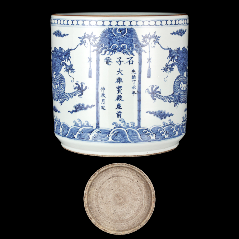 光绪石子巷大雄宝殿座前青花双龙卷缸