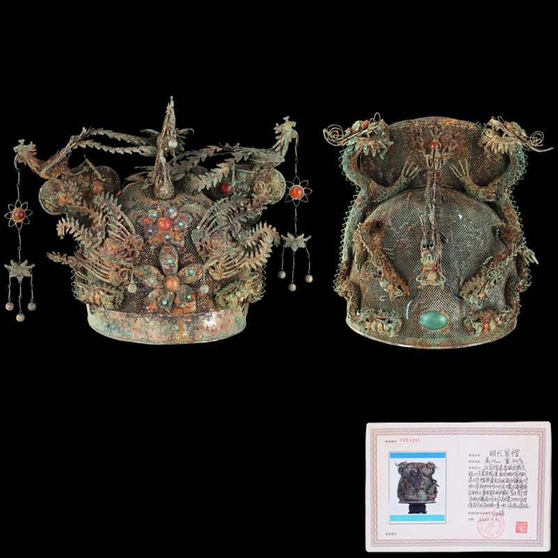 明代龙凤官帽一对