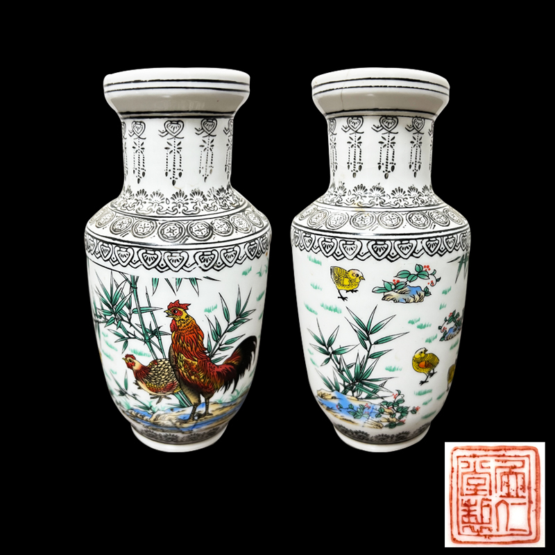 居仁堂制款釉上彩鸡纹棒槌瓶