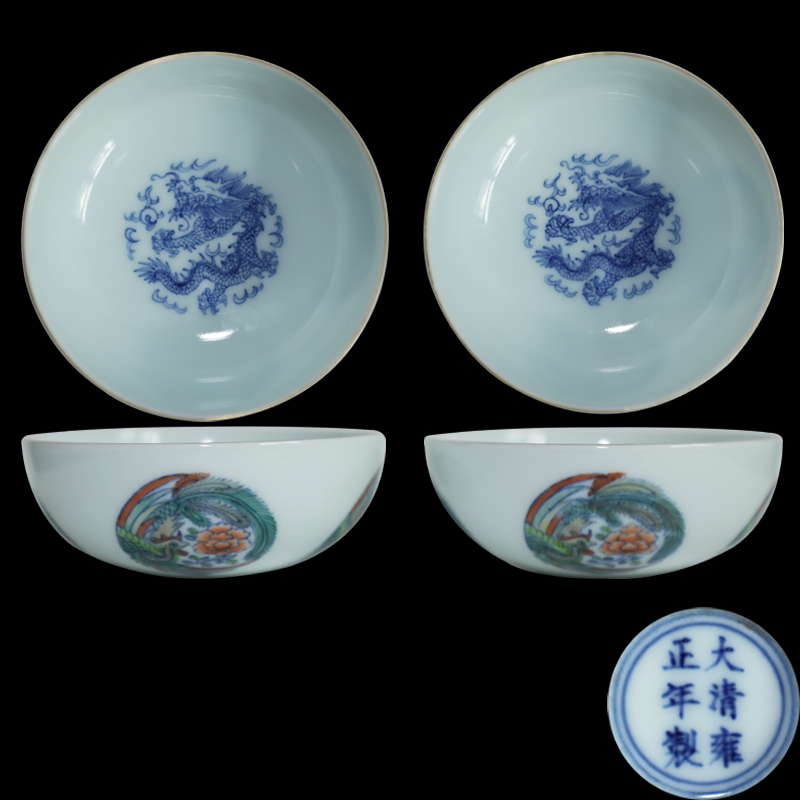 斗彩金边龙凤纹小碗一对