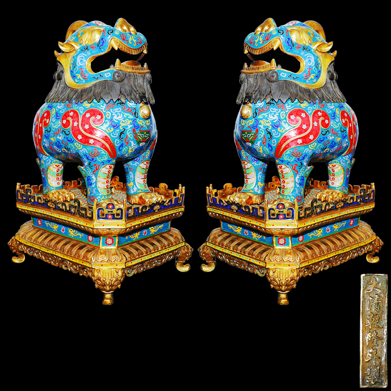 铜胎掐丝珐琅鎏金龙兽香薰炉一对