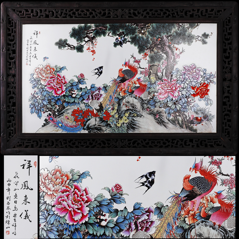 此瓷板画,经多遍施釉上彩后烧制,色彩鲜艳,图案立体感颇强,实属罕见,为不可多得的精品