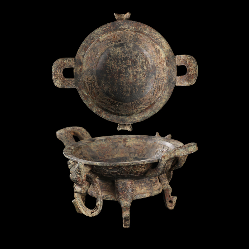 兽钮衔环四足青铜托盘