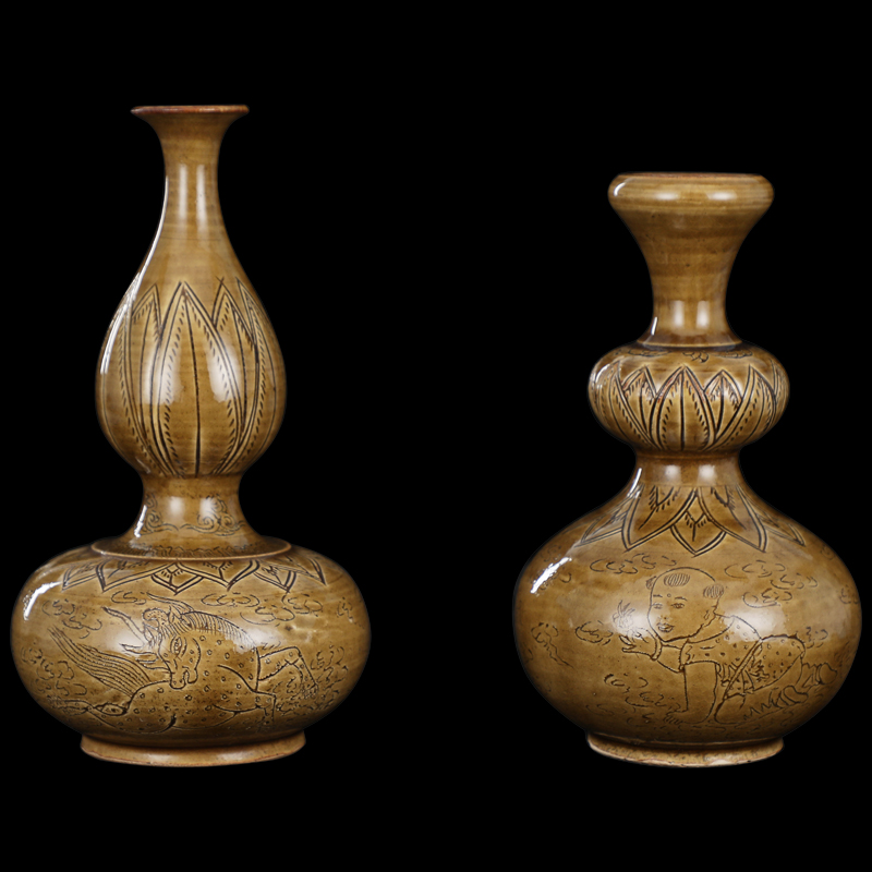 耀州窑婴戏龙纹葫芦瓶