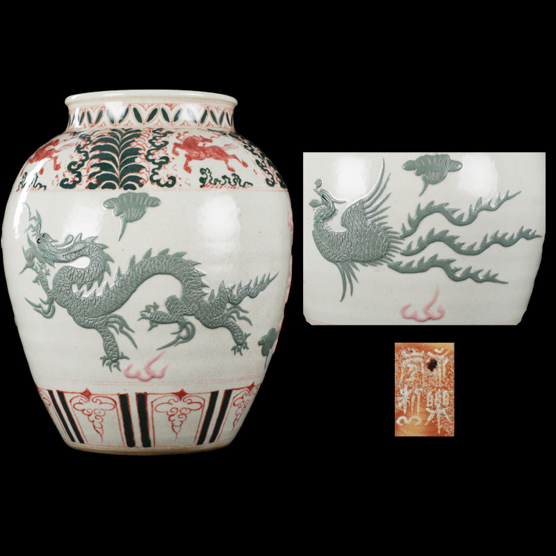 红绿彩龙凤罐