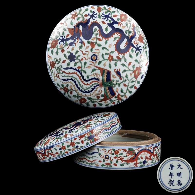五彩龙凤纹粉盒
