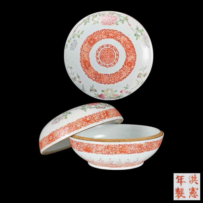 粉彩寿桃花卉纹粉盒