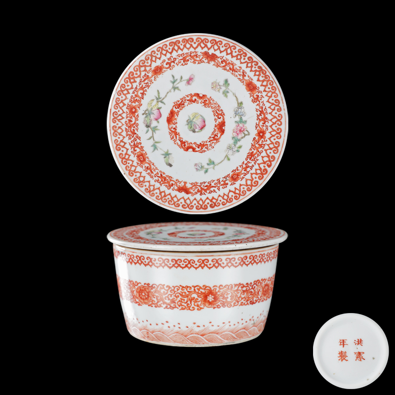 粉彩海水花卉纹盖罐
